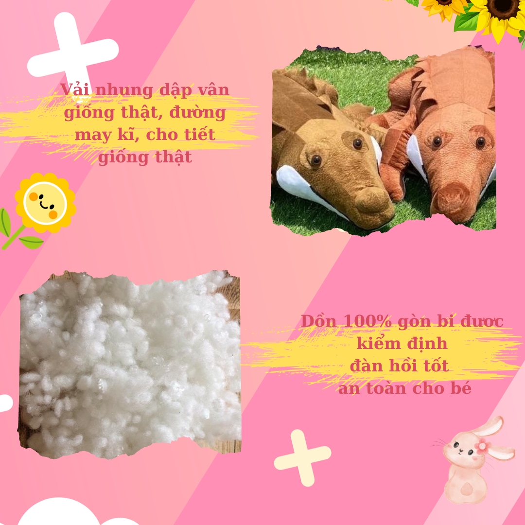 - Thú Nhồi Bông Cá Sấu Lưng Gai được gia công trực tiếp tại shop, bên ngoài được làm từ nhung mềm mịn, bên trong cam kết nhồi 100% là gòn bi tinh khiết, có độ đàn hồi cực kỳ tốt, không bao giờ bị xẹp khi ôm, đặc biệt an toàn cho cả bé sơ sinh sử dụng.